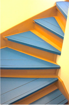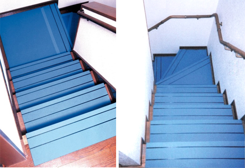 階段や角部の保護に適したL字形状の養生材、「暖段(DANDAN)」 施工が簡単で置くだけ! 耐久性・耐衝撃性に優れていて、繰り返し使用可能! 引越しや室内工事の現場で大活躍しています