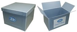 展開した状態で使用場所へ送り、現地で組み立てるタイプのボックスです。組み立て時に機械が要らず、パーツを差し込んでいくだけで簡単にボックスが完成、輸送・管理にかかる物流コストを大幅に削減します。